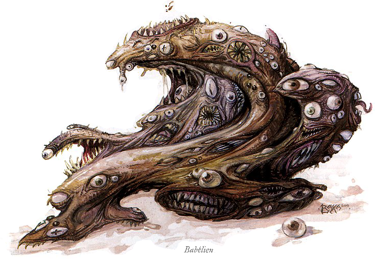 Le babélien est une abomination qui semble tout droit sortie des cauchemars d'un dément. Bien que n'étant pas malfaisant par nature, il se repaît des fluides vitaux et montre un goût très prononcé pour le sang des créatures intelligentes.