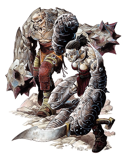 Les exemples suivants de demi-golems utilisent un guerrier demi-orque de niveau 1 comme créature de base. Ce personnage a raté l'un de ses jets de Volonté lors de la greffe (voir Le danger, ci-dessus).