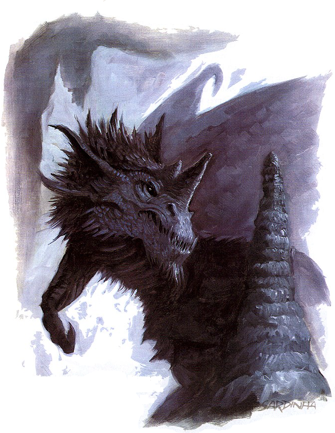 Notes de l'archiviste draconique : Nous avons remplacé la compétence Scrutation par Discrétion, propre aux dragons bleus.