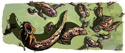 Les gâches sont des créatures anormales ressemblant à de gros vers qui vivent dans d'immenses mares de vase tout aussi étranges qu'eux.