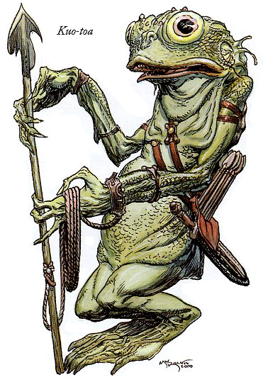 Les kuo-toas sont des humanoïdes aquatiques dont l'origine remonte à l'aube des temps. Ils sont connus pour leur malice et leurs tendances diaboliques.