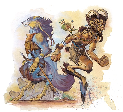 - Particularités : communication avec les animaux, immunité contre l'électricité et la pétrification, imposition des mains, résistance au froid et au son (10), défense contre les projectiles, empathie sauvage, odorat, réduction des dégâts (5/mal), vision dans le noir (18 m), vision nocturne