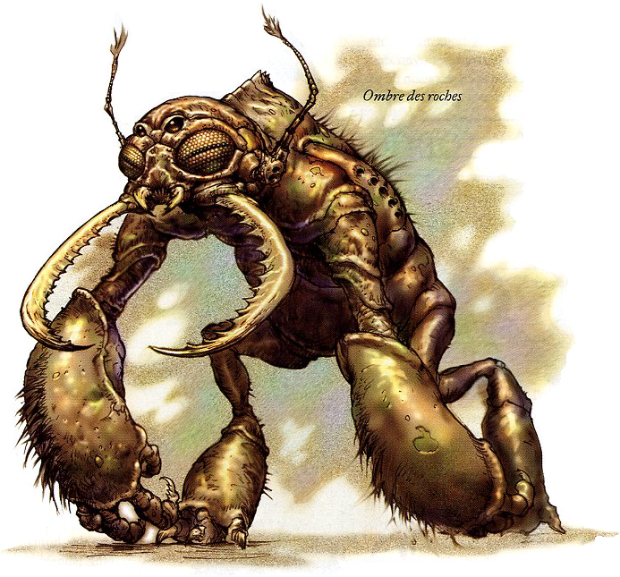 L'ombre des roches est capable de porter des coups assez puissants pour broyer la plupart des adversaires. De plus, ses mandibules sont suffisamment fortes pour tout sectionner, même ce qui est protégé par une armure lourde ou un épais exosquelette.
