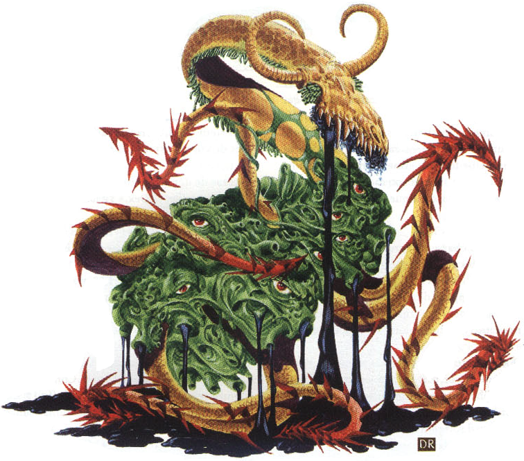 - Attaque à outrance : 3 tentacules (+19 corps à corps, 1d6-2), morsure (+14 corps à corps, 1d6-2 et 2d4 d'acide)