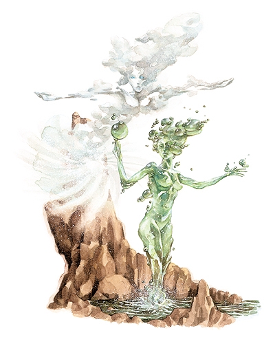 - Particularités : élémentaire, bassin élémentaire d'air, maîtrise de l'air, perception de la respiration, prescience, régénération (10), réduction des dégâts (10/-), RM 25, vision dans le noir (18 m)