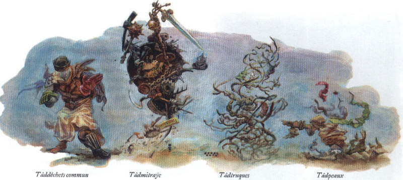 Les tâddéchets sont des créatures artificielles mystérieuses douées d'intelligence et composées de détritus divers, de morceaux de tissu, de métal et d'autres rebuts des sociétés civilisées, particulièrement celles où la magie est d'une utilisation fréquente. Les tâddéchets sont relativement grégaires, agissant en groupes aussi discrets que possible, choisissant leurs hôtes avec soins en fonction de leurs objectifs.
