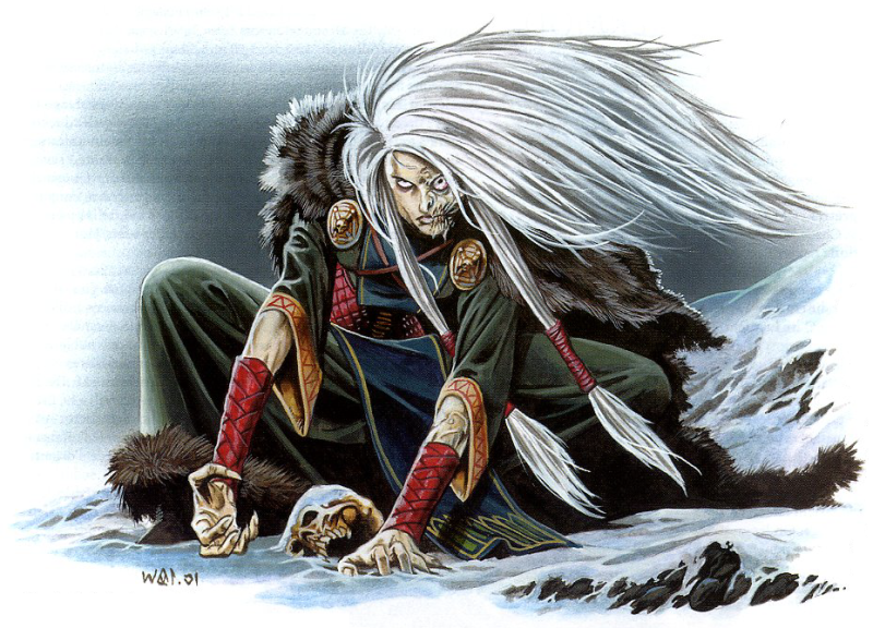 Notes de l'archiviste draconique : La suppression des compétences Langage secret et Scrutation et les points de compétences supplémentaires du fait du passage à la version 3.5, nous ont fait ajouter les compétences Connaissances (histoire), Profession (fossoyeur) et Utilisation d'objets magiques que Hel ne maîtrisait pas, et augmenter de +3 la maîtrise de toutes ses compétences.
