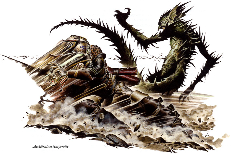 Lorsque le psionique est en Accélération temporelle, les autres créatures sont invulnérables à ses attaques et à ses facultés. Cela signifie qu'il ne peut pas cibler une créature avec une attaque ou une faculté. Par contre, une faculté qu'il manifeste (qui cible une zone d'effet et qui a une durée suffisante pour continuer après la durée de l'Accélération temporelle), a un effet normal sur les créatures lorsque l'Accélération s'arrête.
