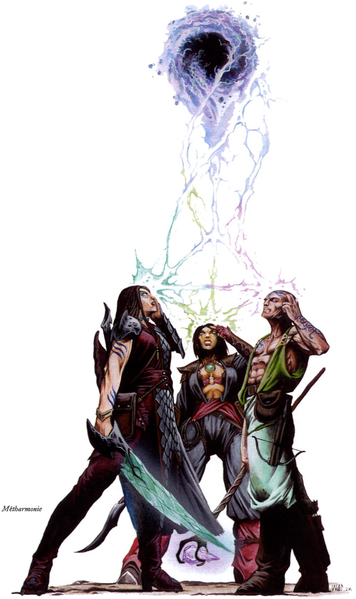 Lorsque le psionique manifeste cette faculté, il décide d'un nombre de points psi dont chaque participant s'acquitte pour emplir une réserve collective. Par exemple, si dix psioniques participent à hauteur de 10 points psi, le total initial de la réserve de points psi sera de 100. L'un des individus est choisi par cooptation des autres participants pour devenir l'orchestrateur de la Métharmonie (c'est habituellement le psionique ayant manifesté la faculté qui est choisi, mais cela n'a rien d'obligatoire). Jusqu'à la fin de la faculté, cet orchestrateur va diriger les efforts du groupe. Des fils brumeux de puissance luisante relient les fronts des participants en un motif complexe et changeant.