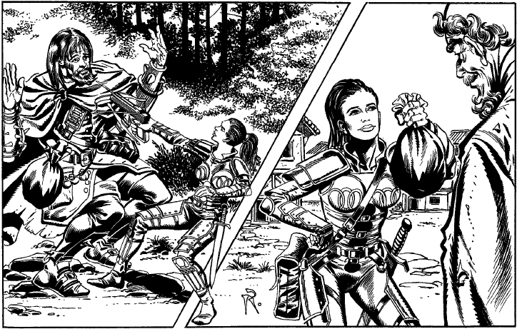 Vous avez certainement plus en commun avec le rôdeur qu'avec tous les autres membres du groupe. Vous êtes tous les deux conscients de l'importance de la discrétion, de faire des reconnaissances en terrain inconnu, et de la nécessité de privilégier l'anonymat plutôt que la gloire. La seule chose qui vous divise est le fait qu'il se contente de vivre à la dure, alors que vous appréciez des choses plus raffinées de la vie. Cependant, vous pouvez toujours compter sur le rôdeur pour faire le boulot quelles que soient les difficultés.