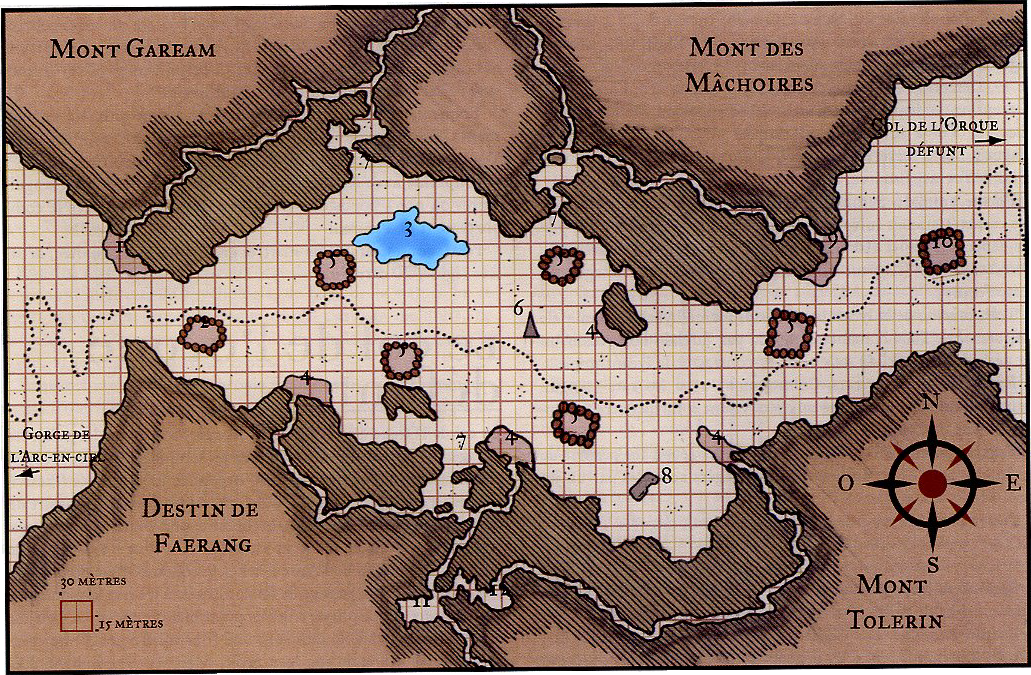 Note de l'archiviste draconique : La carte du col de l'Orque défunt a été retouchée par nos soins, car la version françaises était peu lisible (du fait que les numéros étaient légèrement décalés vers la haut. Vous pouvez voir la carte originale en français ici.