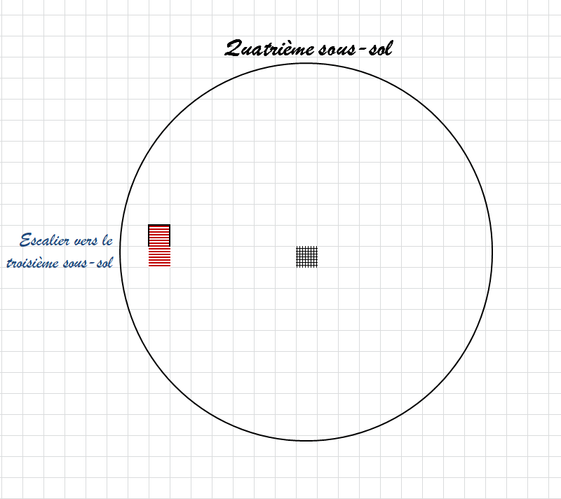 Cet étage est le seul en sous-sol accessible depuis la surface. L'escalier es colimaçon s'arrête dans un couloir de pierres taillées. Si l'on joue de l'orgue, tous les étages inférieurs sont baignés de cette musique.